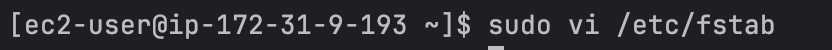1. vi 편집기로 fstab 파일 열기