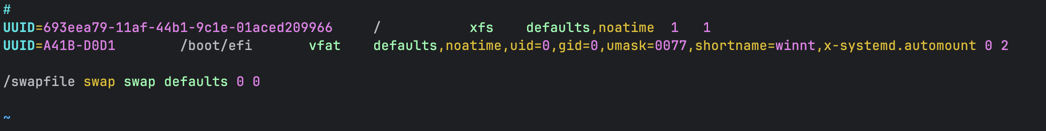 sudo vi /etc/fstab